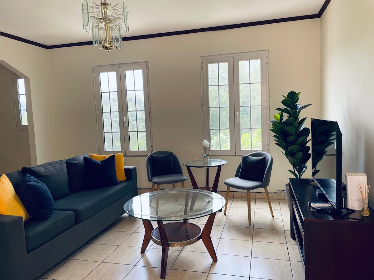 Warm apartment, with independent access (No stairs) Strategic location, to access Commercial, volcano, Historic Center, National Library and beaches. An open and bright concept with fine details, where a living room, a dining room, and an equipped kitchen. With sofa bed (for an additional guest), 2 Smart TV, cable, wifi, hot water, A/C washer/dryer, walk in closet and work aréa Specially designed for you who are looking for a comfortable stay.