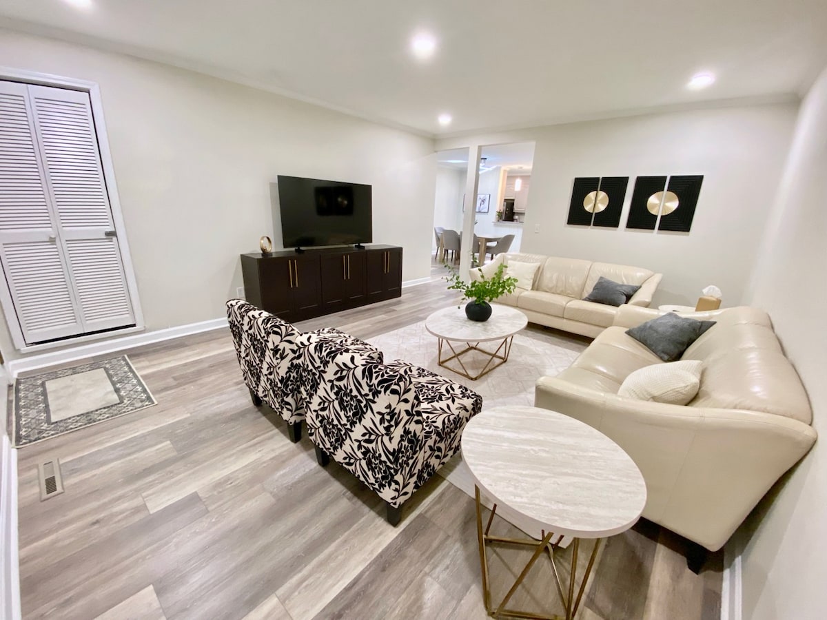 4br/2ba condo. Open concept kitchen and living room with 2br/ba on either end of the living room area. Fully equipped kitchen with dishwasher. Complimentary starter set of paper products( paper towels, toilet paper, trash bags) Plush pillowtop queen mattresses. Closet space and small dresser Roku streaming TVs Bathrooms equipped with double sink vanities and all the essentials. ****Free WiFi. ****Washer and Dryer included ****Condo on the 3rd floor(top level), accessed via stairs