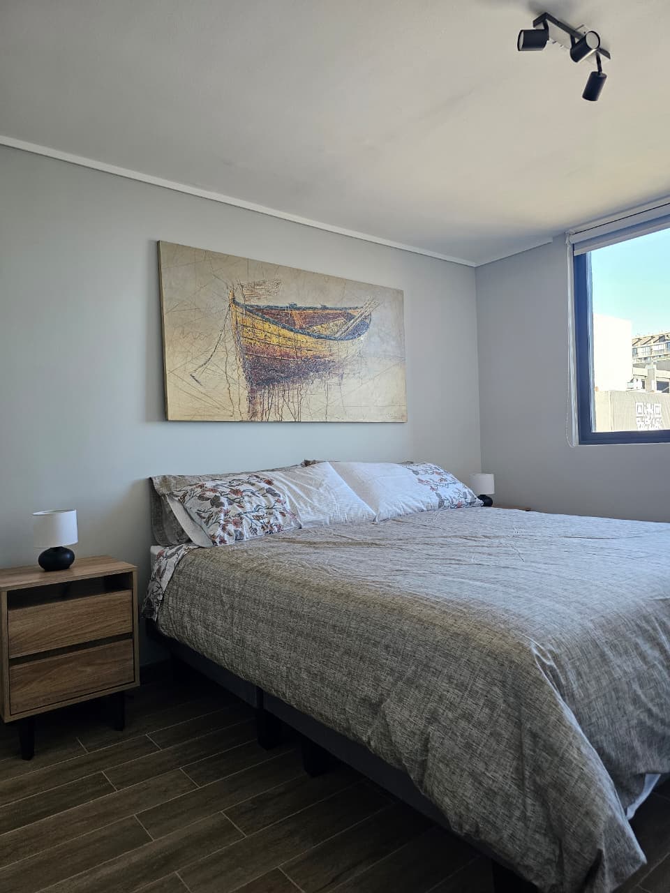 Disfruta de una experiencia con estilo en este alojamiento céntrico a pasos de Movistar Arena, Club Hípico, Fantasliandia, bares, restaurantes, metro y locomoción colectiva. Este depto con un estilo único es diseñado para tu descanso, con ropa de cama de primer nivel.