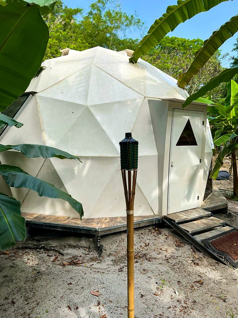 It is a 75-square-meter space overlooking the sunset, designed for you to experience freedom, tranquility and nature connection. Our outdoor area has several spaces where you can contemplate the moon and the starry sky: jacuzzi with hot water, private outdoor bathroom, catamaran mesh, campfire area, sunbeds and dining room. Inside the dome you will find a double bed, trunk, bedside tables, coat rack, trunk and 2 comfortable chairs with coffee table.