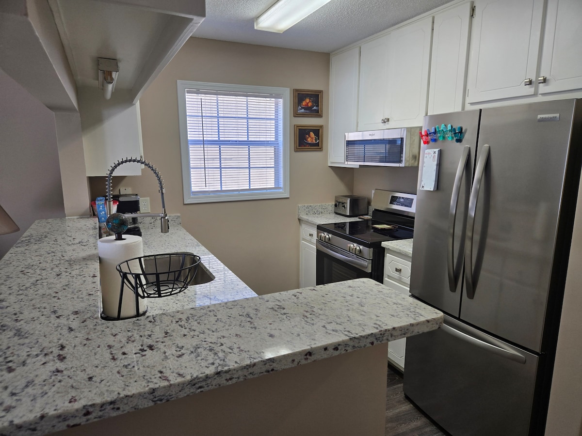 This 2 bedroom 2 1/2 bath townhouse is conveniently located 5 minutes from Fort Rucker and just minutes from the shopping areas and restaurants in Enterprise Alabama. It's packed with amenities to include 3 large TVs and High-speed wireless internet. The kitchen has all the necessities; dinnerware, silverware, knives, pots and pans, toaster, Kurig coffee maker, and more. We pride ourselves in hosting a place that we would want to stay in that has comfortable beds, very clean, and safe.