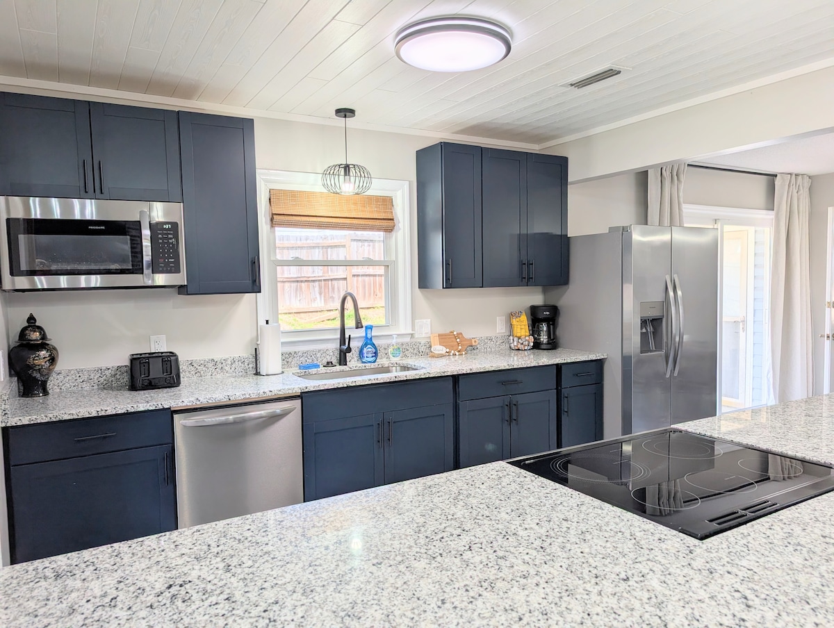 Kick back and relax in this calm, stylish space. This newly remodeled 3BR/2BA home is a fresh, modern retreat designed specifically for those who don't want to compromise on comfort. Every inch of this space features brand-new furnishings, with a King suite and two Queen bedrooms. With a fully stocked kitchen, high-speed Wi-Fi, and a clean, inviting modern vibe, this isn't just a place to crash; it’s a high-quality home base where you can actually relax.