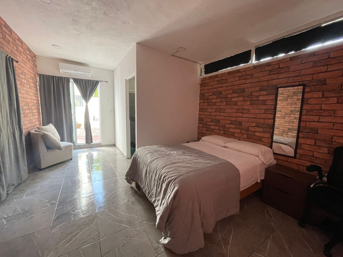 Acogedor estudio privado en Colima. Cama matrimonial, aire acondicionado, WiFi de alta velocidad, Smart TV y baño completo con regadera tipo lluvia. Entrada independiente y detalles en madera que brindan calidez. A pocos minutos de centros comerciales, restaurantes y cines. Ideal para estancias cortas, viajes de trabajo o descanso. ¡Conéctate, relájate y disfruta!