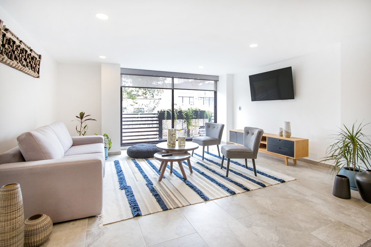 Discover luxury living in Condesa, CDMX, with our elegant 1BR apartment. This residence balances modern design and classic charm. Step out onto your private balcony & terrace to enjoy coffee with a view, or head up to the rooftop garden, an urban oasis. Here, you can relax, read, or take in the cityscape. The apartment boasts a luxurious interior with high-end finishes and designer touches for your comfort. Your stay promises an unforgettable experience