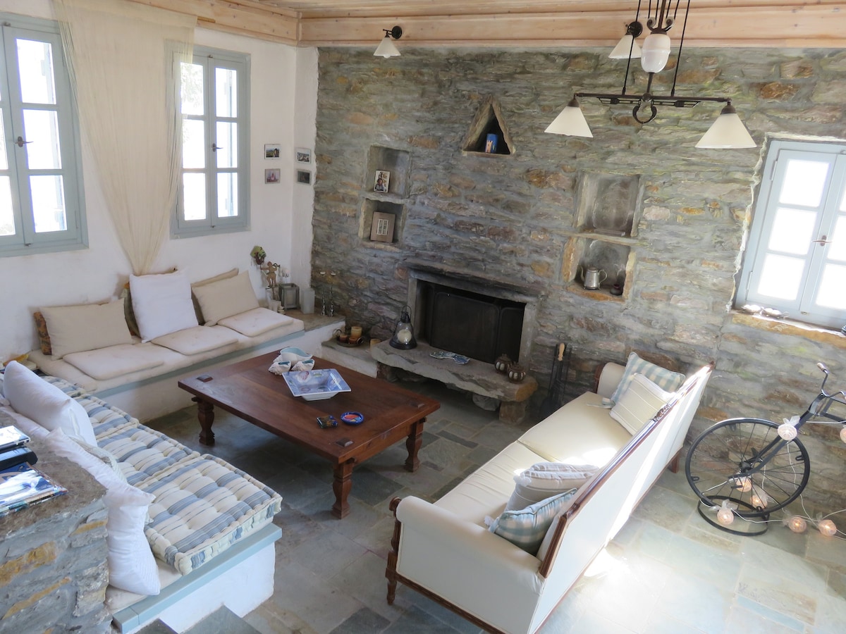 Enjoy a rural farmhouse in a mediterranean landscape with an Aegean background! Beautiful and serene, away from touristy spots. Our Rural Kea House stands as a remembrance of rural architecture in Kea, 100 years ago. A stone farmhouse, traditionally built and yet modern. A place to come to and relax, enjoy a glass of wine under the stars or contemplating the view.