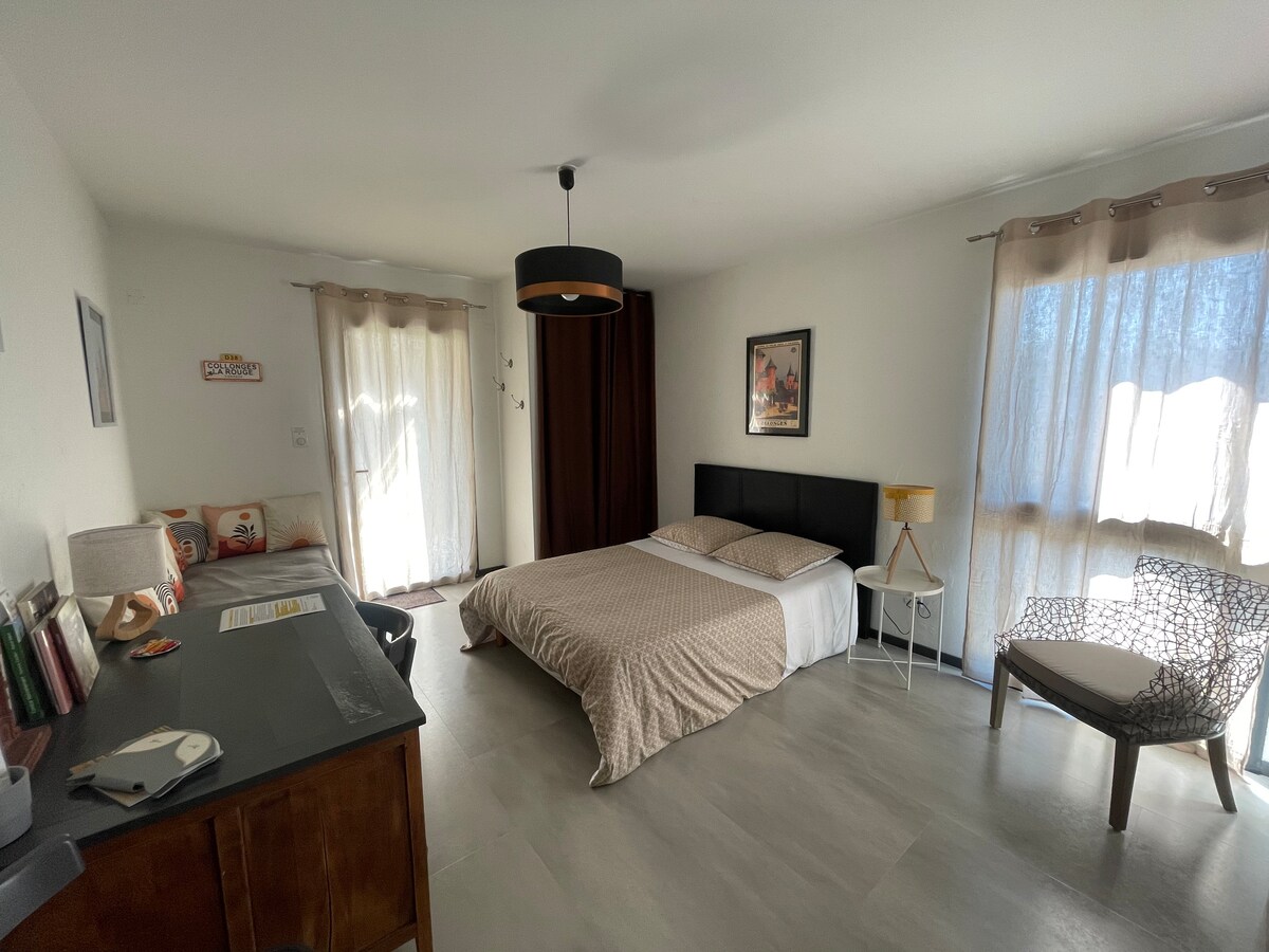 In a peaceful hamlet, 5 minutes' drive to downtown. It offers beautiful views of MAURIAC and the countryside. Trails, the lake and golf are within walking distance. Living room: 37 m2, bright with soft and relaxing colors with very well-equipped kitchen area and comfortable relaxation area. Bedrooms: approx. 10 m2, in warm or pastel colors with double bed. Bathroom: 6 m2, shower, sink, toilet and storage.