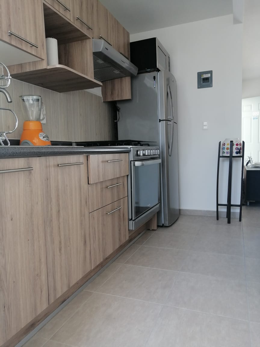 Enjoy this modern apartment, fully equipped with all the comforts for the best stay. Gated community with surveillance, free parking, WIFI internet. Smoke detector. Two bedrooms with closets, living room with TV and sound bar, kitchen with refrigerator, stove, full kitchen and washing machine. Dining room. Living room. EXCELLENT LOCATION, connects to the industrial area in just 5 minutes, Val'quirico in 18 minutes, Cholula Archaeological Zone in 20 minutes.