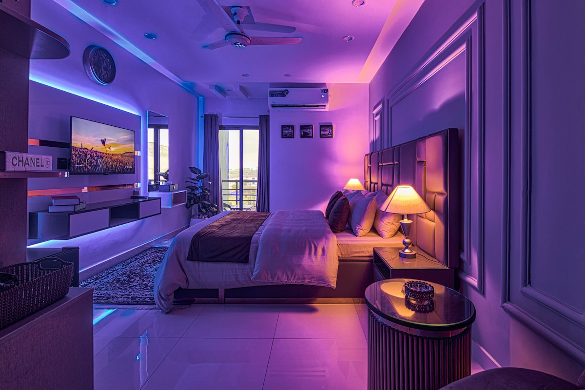 🛏️ King Bed & Private Balcony with Giga view. 📺 55” Smart LED & 30 Mbps WiFi. 🍽️ Modern kitchen with premium appliances. ❄️ Inverter ACs & 💨 automatic air-fresheners. 🔐 Digital locks & elegant décor. 🏙️ Above Zeta Mall, steps from Giga Mall. 🌄 City & hill views. Perfect for families, couples & corporate guests. 🪪 CNIC required (18+). 🚭 No smoking/events. ✅ Book now for luxury & serenity.