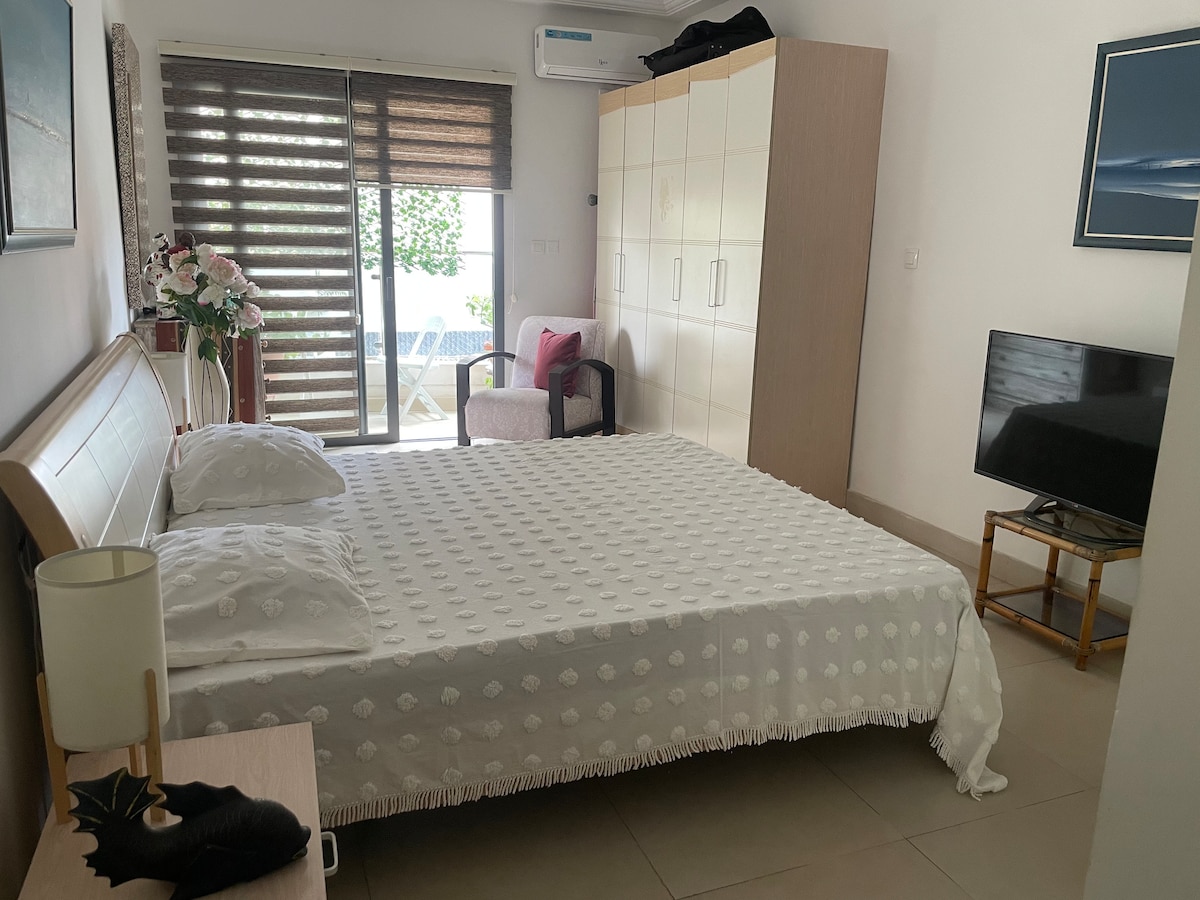 Brand new & elegant 1 bedroom+bath studio. On 2nd floor with high end finishes. 24/7 security, video surveillance, generator, water pump, elevator, daily cleaning & electricity cost included in rent. Room has fridge, AC, TV, Microwave & other appliances. Located on a central street in Mermoz at walking distance from restaurants, shops, Auchan Cite Keur Gorgui, and Olympic Club. At less than 5 minutes drive to Sea Plaza shopping mall, Auchan Mermoz. And 15 minutes to downtown and Almadies.