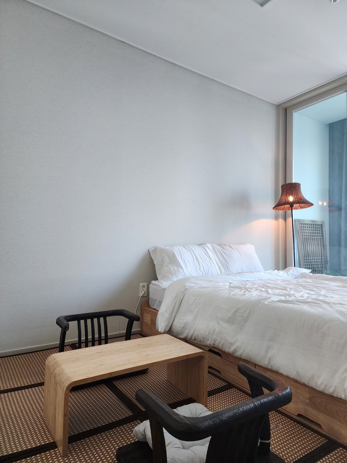 A newly built hanok with a quiet charm, and vintage wood with time stacked in it, creates a deep atmosphere. The texture of the old tree, which has been naturally melted into a smoothly trimmed structure, brings warmth to the space, and the interior is an eclectic mix of modern and traditional beauty that catches the viewer's attention. When you go up to the second floor, you will have a completely different world. An exotic Balinese motif terrace and jacuzzi make you feel at home in the city. With natural furnishings, soft-toned textile props, and green plants, this space is a truly healing place to relax your body and mind. With a harmonious melting pot of Eastern and exotic sensibilities in the past, this hanok is a space that creates a unique experience for those who stay, beyond a simple house.