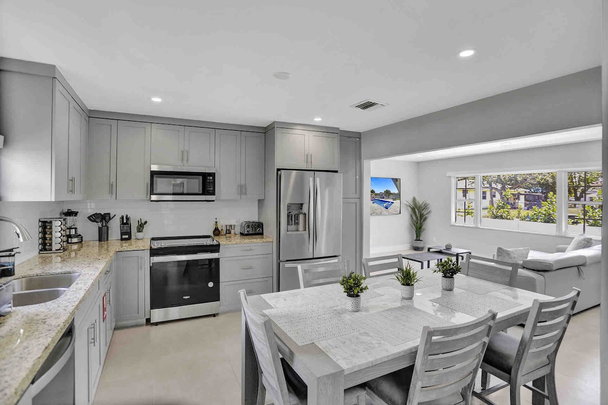 Imagine yourself in this modern oasis in Dania Beach, which offers a luxe retreat for families longing for a warm escape. This 3-bed, 2-bath vacation rental boasts a king-size bed, ultra-fast WiFi, 70-inch 4K LED TVs, a spacious double oven kitchen, a pool, and more. Located between FLL and MIA international airports, near vibrant Miami and Fort Lauderdale, it's perfect for indulging in local dining, sports, attractions, and shows. Experience a slice of sun-kissed luxury in the heart of Florida.