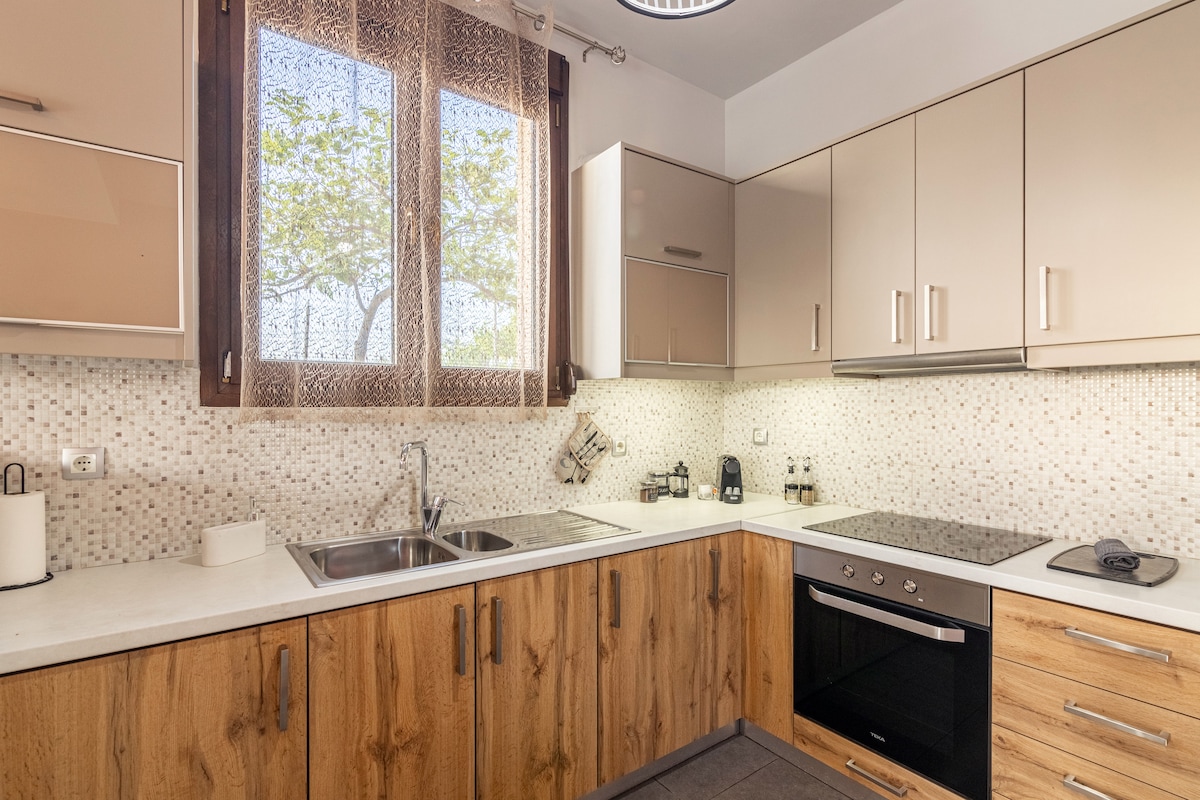 A warm, friendly, modern, ground floor space of 35sqm, fully equipped and furnished. It has 1 double bed, TV, refrigerator, kitchen, hot water 24 hours a day, air-condition, WIFI, and a small terrace at the entrance. It is located in a quiet neighborhood in Nea Alikarnassos and very close to the airport (1.6km), the port (2.5km), the city center (2.7km), the beach (5.2km) and a junction for access to the national road (1km).