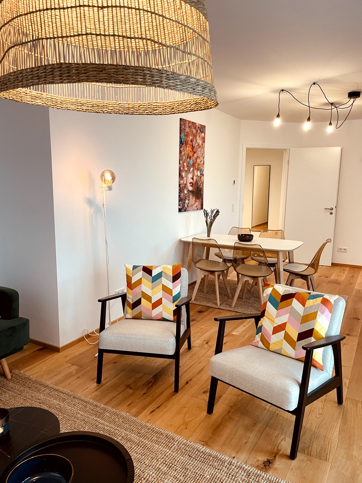 Stylishly furnished apartment offering the highest comfort, fully accessible, and equipped with 2 TVs. The kitchen is fully equipped with everything you need for cooking and dining. From the spacious balcony, you can enjoy stunning views of vineyards in Rheinhessen and the Palatinate. The apartment boasts a central location: the A61 and A63 motorways are about 10 km away. Close to the areas of Mannheim, Speyer, Kaiserslautern, Ramstein and Frankfurt. Charge your EV conveniently overnight (22kW).