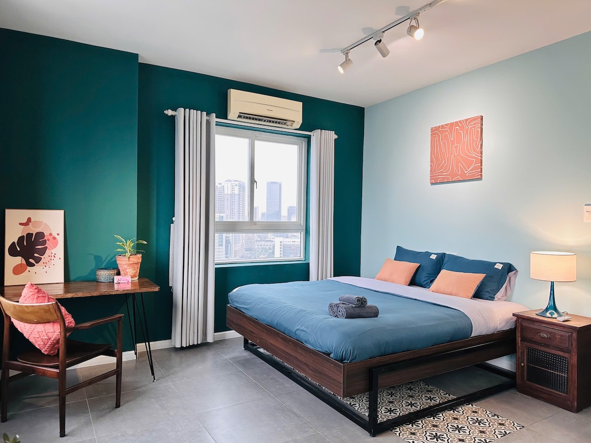 A beautifully designed studio apartment with everything you need, centrally located but hidden away just enough for a peaceful night of sleep away from the heavy city noise. Great for travelers who want to explore Saigon and are looking for quality comfort and a more local experience. - Beautiful swimming pool - Free fast wifi, Cable TV - Free amenities for your living: washer, dryer, AC, fridge, hot water - Kitchen with enough tools for your cooking. Note: Not provide/support VAT invoices