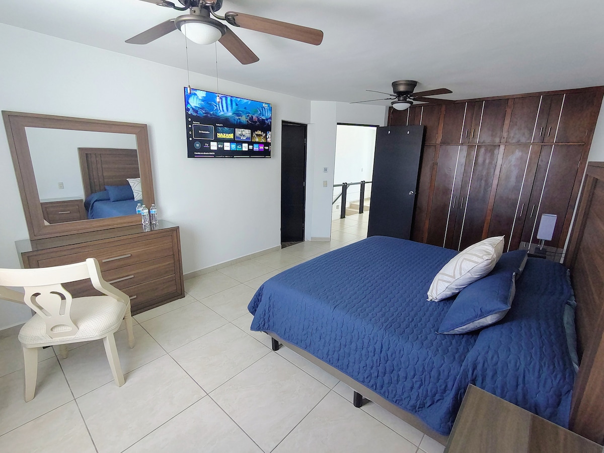 House 3 minutes from downtown, with easy access to public transport and convenience stores and shops. You will find a super clean and comfortable accommodation, nice and excellent treatment. Very central and close to many convenience stores, hospitals, Guadiana Park, restaurants. The house has 2 spacious bedrooms with fan and cold/hot Minisplit, king size beds and 75” screens, washer and dryer, electric garage, digital lock, water dispenser.
