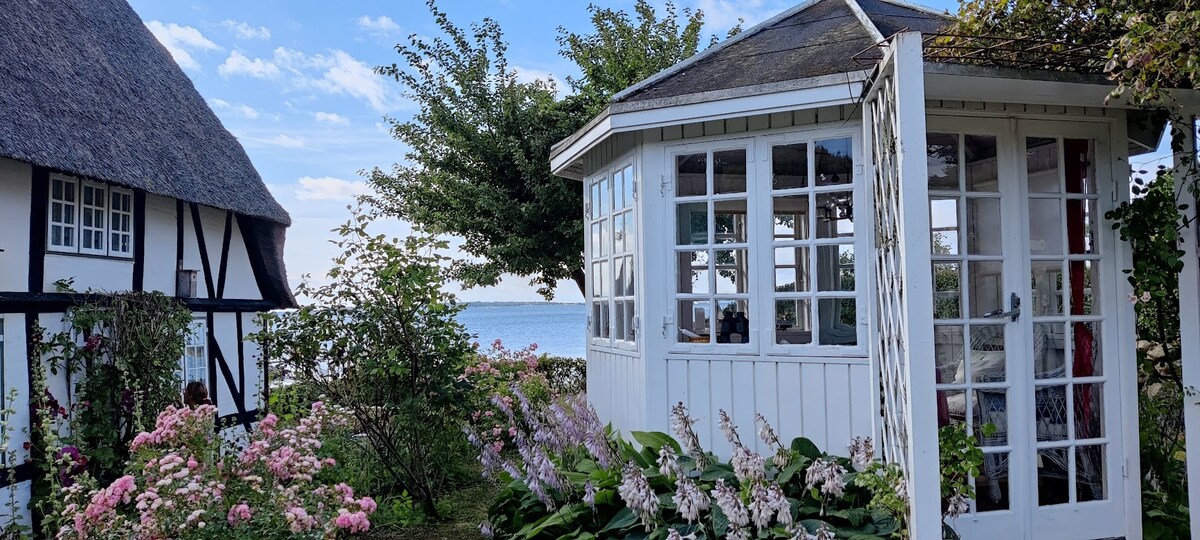 ENJOY SIMPLE LIVING BY THE SEA: (Please note: The rent is cheap and no cleaning fee is charged, so please clean on your departure and bring your own linens, sheets and towels). 22 m2 + Covered panoramic terrace. Views of Ses, Sydals and to Ærø and Germany. Living room with double sofa bed (200*125cm) Alcove with double bed (200*135cm.) Garden with lawn, sea view and garden table. Backyard with lawn. The house is a little low ceilinged in the kitchen.