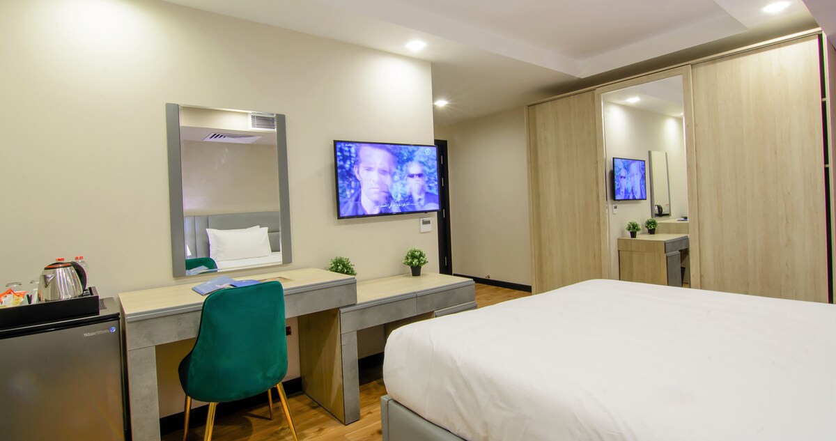 Our studios feature full kitchens and living areas, allowing you to cook, work, and entertain in style. Complimentary Wi-Fi is available throughout the premises. Immerse yourself in the true essence of well-being while admiring the panoramic waterfalls and lush landscapes surrounding our innovative serviced apartments.
