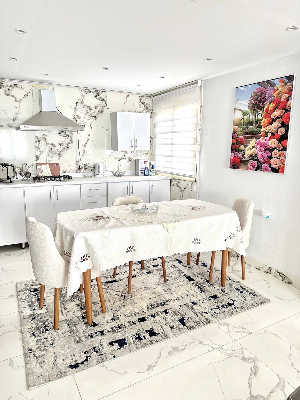 A full apartment in a spacious Secret Garden rooftop with panoramic sunrises, blue skies & full moons in Cairo’s Downtown heritage center, just minute’s walk from markets, tourist attractions & central metro station. This newly renovated 70s apartment is minimalist, modern yet warm, a one-of-a-kind designer space in the heart of the capital, combining both urban & natural elements of Mediterranean architecture. As superhosts & artists we always try our best to make your stay a memorable one.