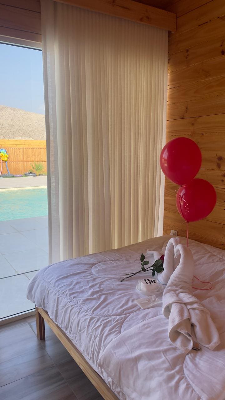 A rest house with a swimming pool with a rural character and design and a bright mountain view. The rest house is characterized by the outdoor space and the unique swimming pool in Ras Al Khaimah with a sense of relaxation and calm to spend the best and most beautiful times.