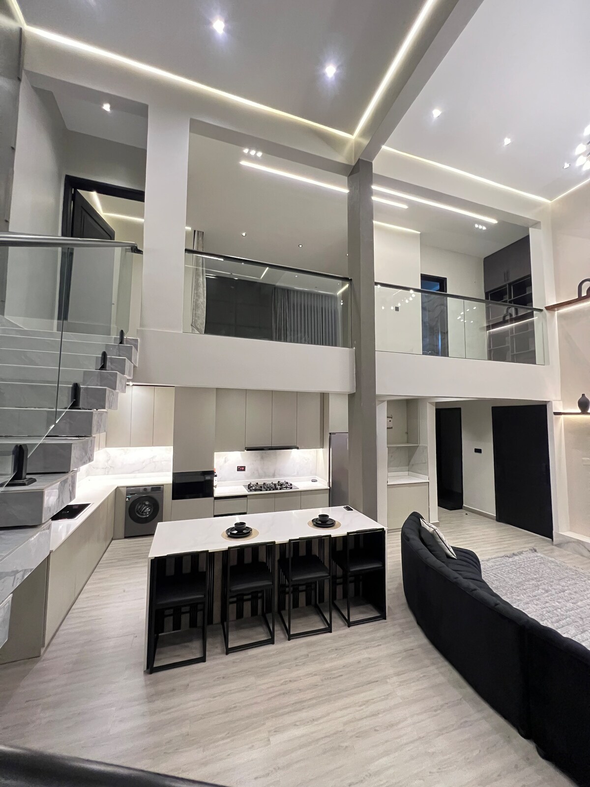 A loft Style apartment designed for the perfect relaxation. This loft will give you "The Pent House feel". You will immediately notice the double height ceilings, wide balcony area with an open view, the bedrooms and common areas all together very spacious. The house also serves a spacious bathroom with vanity and good lighting. If you are a content creator, the natural light and custom made designs will favor good production.