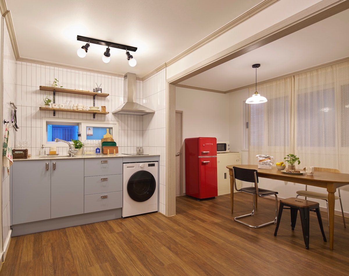 It is located in Seongsu-dong Cafe Street in the center of Seoul, and has a good transportation environment and various cultural facilities for traveling anywhere in Seoul. In particular, Seongsu-dong is one of the trendy areas in Seoul, where you can use various cafes and restaurants right in front of the accommodation, and you can enjoy various shopping such as fashion and beauty. In addition, 🌲Seoul Forest Park is a 3-minute walk from the accommodation, so it is a really cool place where the city center and nature blend well. Start your trip at our home where you can enjoy an early morning jog or walk with baked bread and a cup of coffee😊 • Subway Line 2 Ttukseom Station, Seoul Forest Station 5 min walk • 10 minutes on foot from✈️ the airport bus stop (6013) • 25 minutes by subway from Hongdae Station • Myeongdong 15 minutes by subway - 2 people in the garden (up to 4 people, additional charge 20,000 KRW per person) -Check-in 4pm/Check-out 11am -Long-stay available (with cleaning tools) - No parking, nearby Ttuk Fiber Shuji public parking lot available (1,800 won per hour)