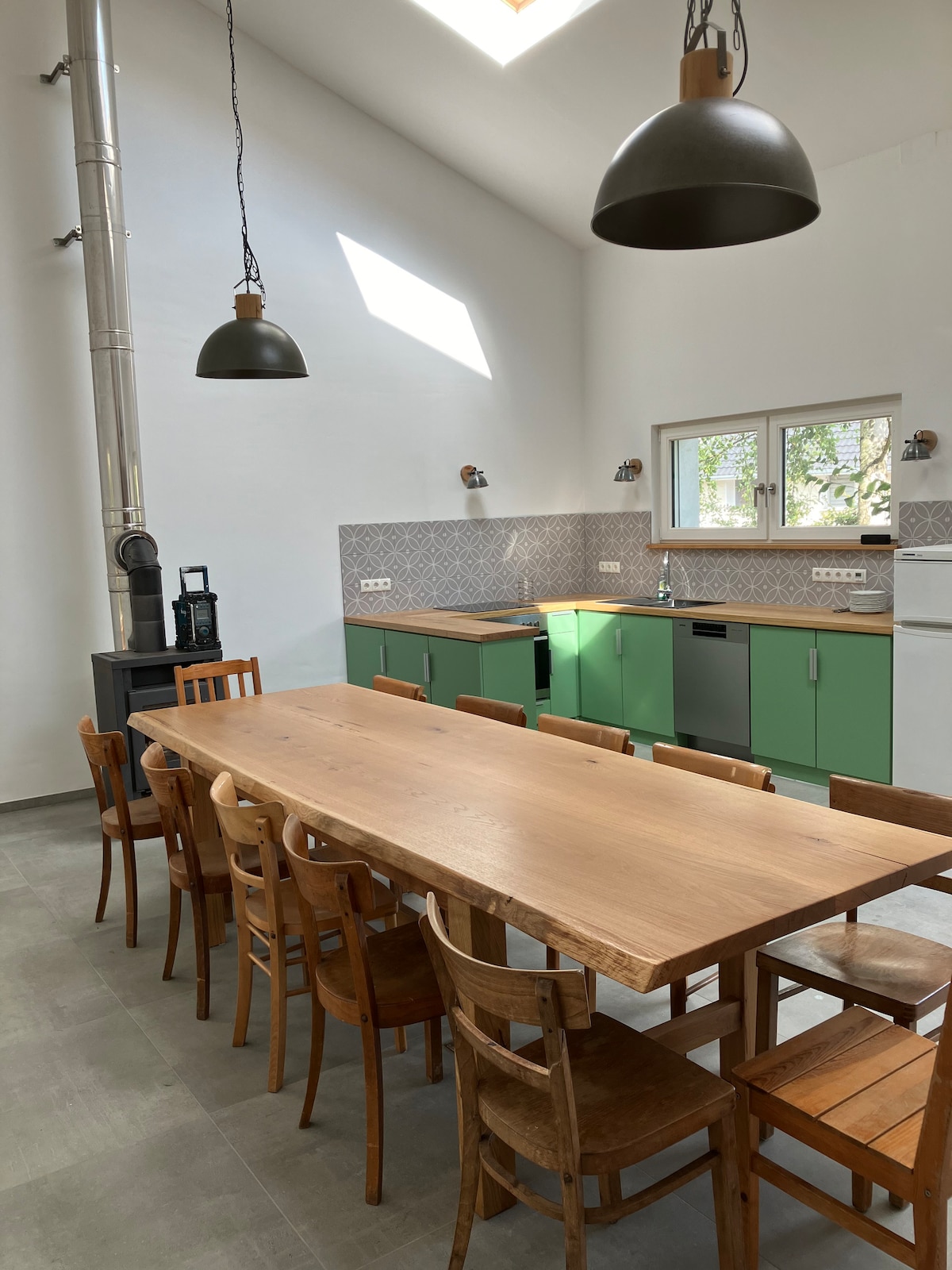 The monument from 1663 has been lovingly and sustainably renovated. You can travel here for a few days in the 50s to 70s and still not have to do without the amenities of today. In the small kitchen, we had to choose between the dishwasher and the oven, we chose the oven. Of course, you will find baking paper on site😂.