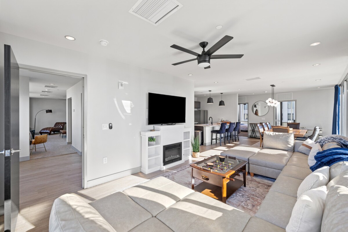 The Top Shelf is a space carefully crafted with amenities aplenty! Perched on top of the 90-year-old Pepper Bourbon Distillery, this condo is for the Lexington visitor who likes to be in the middle of the action. Soaring views, three balconies, and all the amenities to make your Bluegrass visit one of a kind. The Top Shelf is perfect for a discerning couple, an adventuring family, or for a group of fun-seekers. Large parties are not allowed. Maximum guests, per LFUCG code restrictions =10