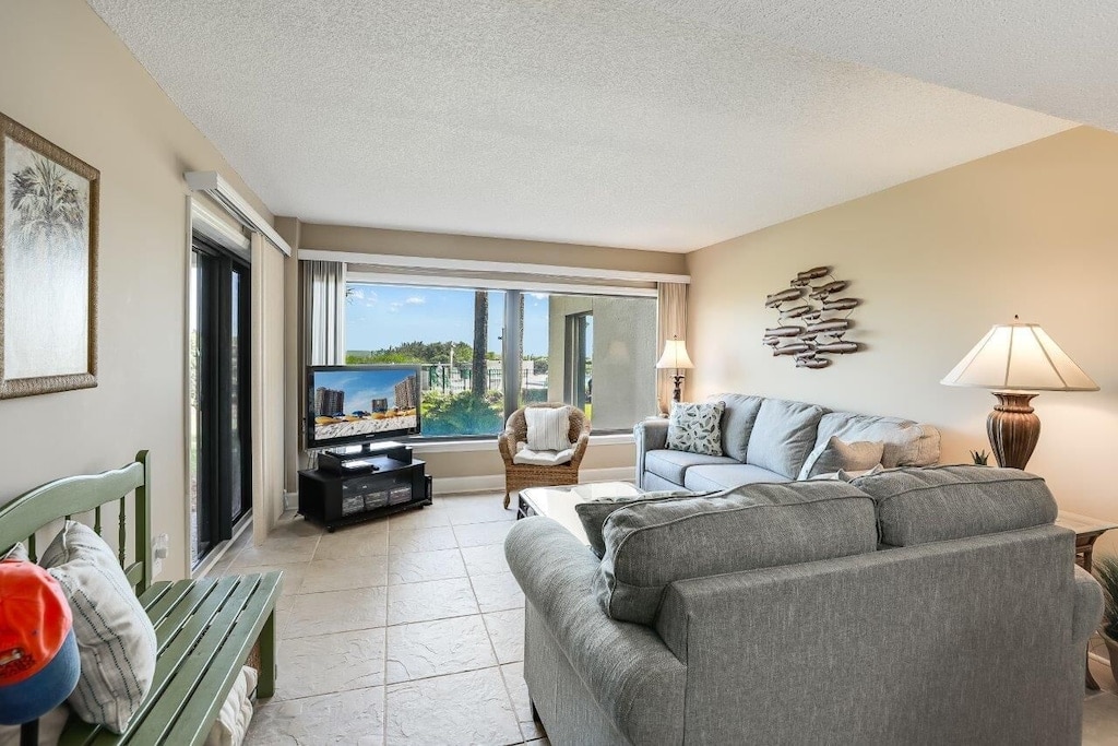 This fully renovated condo is in The Sandcastles complex within Amelia Island Plantation. It has 1 bedroom, 1 bath, a flex room that can be used as an office or a sleeping space with a king trundle bed. Single kayaks & gas golf cart are included to explore Drummond Park, Walker's Landing, Nature Center, mini golf, multiple shops and restaurants all within Amelia Island Plantation. The location is great, views are incredible and is a very comfortable space for couples, and small families!