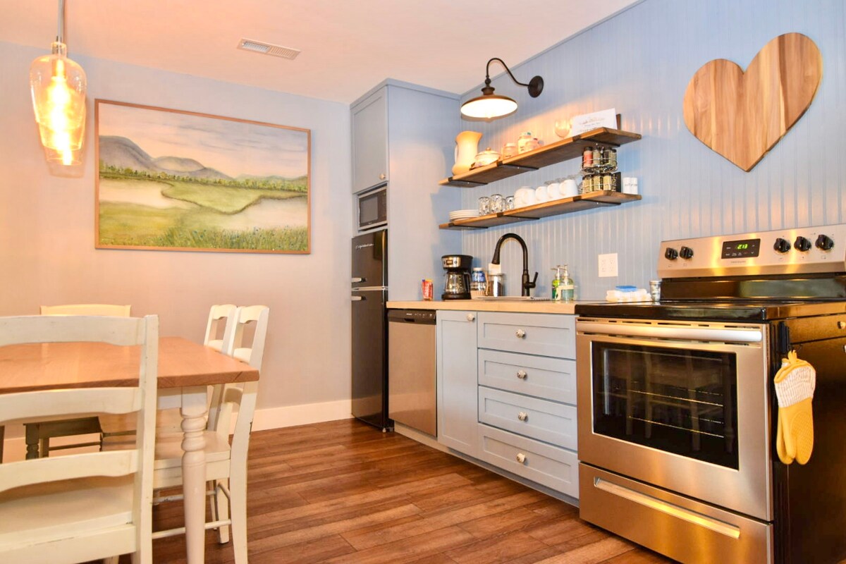 Our tiny house is beautifully appointed with everything you need to live (and work!) in luxury two miles from the Blue Ridge Parkway and two miles from downtown Floyd, VA. Sleep soundly on the queen sized mattress topped with 4" memory foam. Cook your gourmet meals in the fully equipped kitchen—(we provide welcome mini loaf, organic coffee, half and half, sugar, rolled oats, olive oil, salt, pepper, and cinnamon.) Spend the evening enjoying a campfire or relax on the porch swing.