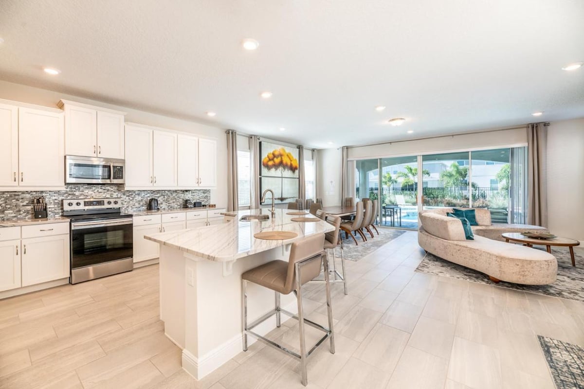 Welcome to Villa Lumine, a modern life- changing retreat just a 20-minute drive to Disney! Enjoy spacious living areas, a boho lounge, and a stunning coffee bar. Step outside to your private pool with complimentary BBQ. Every corner is designed for comfort and style. Close to major attractions, dining, and shopping. Whether you’re visiting for a magical Disney vacation, a family getaway, or a relaxing retreat, this villa is your ideal home! Pool Heater available for extra fee $40