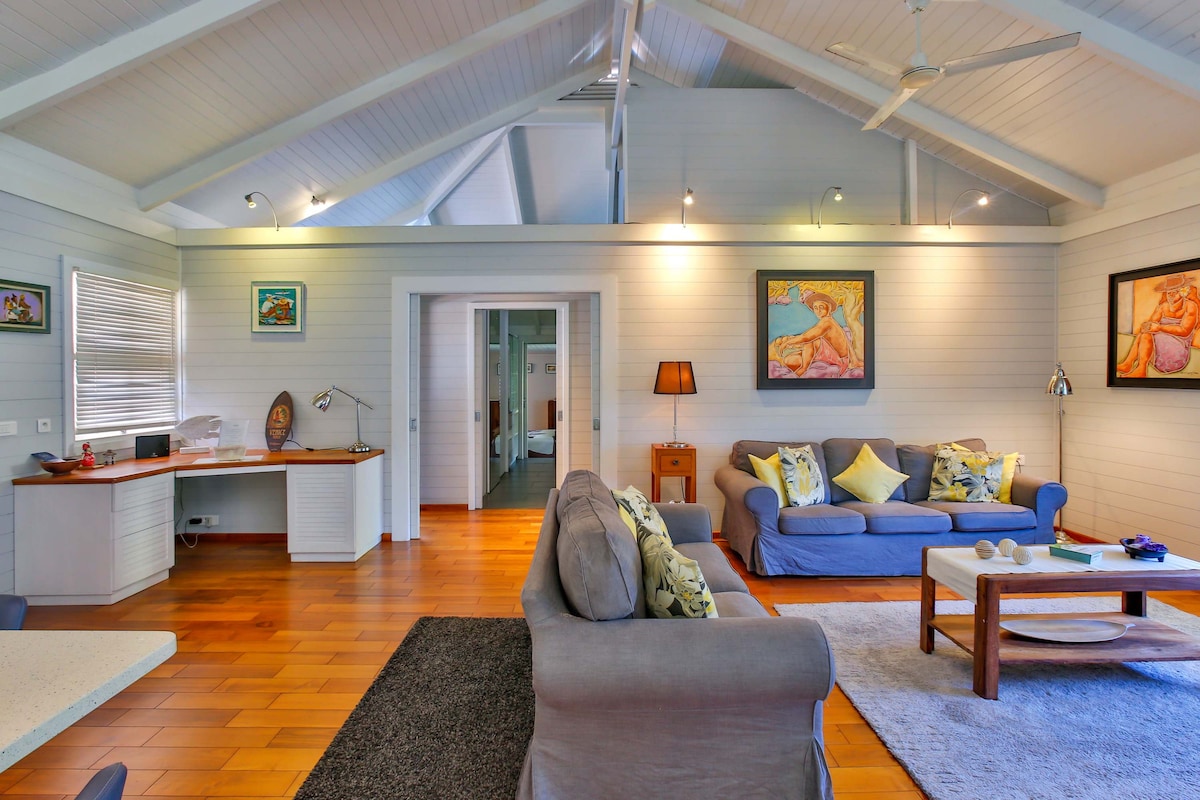 Beautiful 3 bedroom/2 bathroom waterfront house in Paea, 20 minutes from Faaa airport. Ideal getaway if you want to spend the day on the lagoon kayaking, snorkeling or fishing. Enjoy morning coffee or afternoon happy hour with a majestic view of the Maraa pass, where the reef break attracts local surfers.