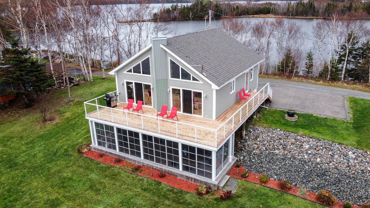 Welcome to “Point Beithe” (birch point in Gaelic). This beautiful home sits on its own point surrounded by 180° of Mira River waterfront age. You will also enjoy access to your own small private island that is connected by a shallow sand bar. Sit out on the large deck or floating dock to enjoy the views of the river, launch kayaks, paddle boards, and swim. We have signed up for the strongest internet service offered in the area (Starlink). Cellular reception is not great in the area.