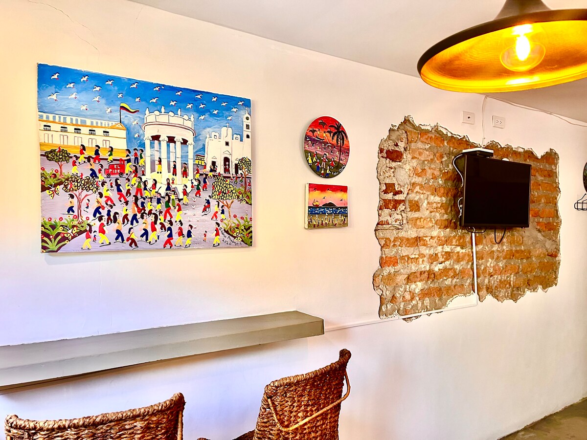 ☀️☀️ ¡Welcome to our cozy Loft in the Center of Santa Marta! Here, the authentic magic of the city comes to life. 📌You'll be just 5-minute walking from the warm Caribbean beaches, perfect for swimming or sunbathing and 10-minute walk from tourist attractions like Parque de los Novios, a vibrant area of restaurants and bars, and the beautiful international bay. 1 block away you take the bus to Rodadero, or if you prefer to go to Minca, Tayrona or Palomino it is also very easy