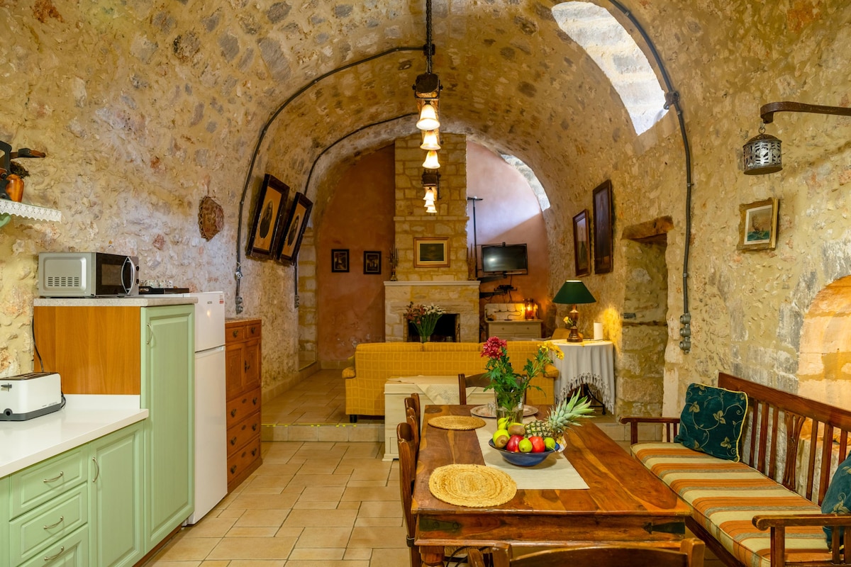Escape to a unique exotic villa in Myli Gorge, just 15 minutes from Rethymno. This three-bedroom villa combines traditional stone architecture with a warm, rustic atmosphere and features a one-of-a-kind natural pool. A 5-minute path leads you to the villa, where you can enjoy a meal at a nearby taverna or unwind in a peaceful setting. Ideal for both relaxation and exploration, with hiking trails and historic landmarks just a short distance away.