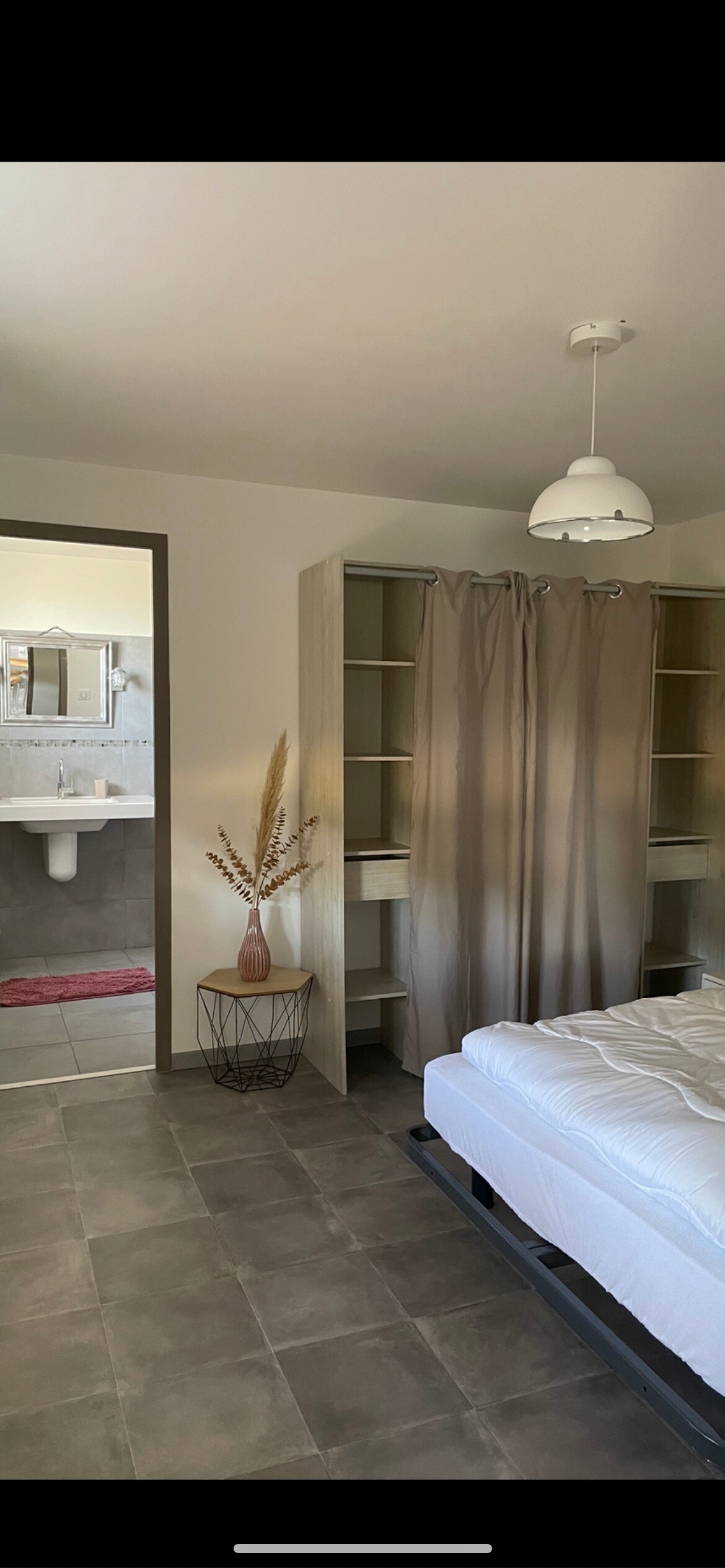 Ce logement type studio,tranquille , lumineux et indépendant , proche du centre-ville, des commerces et de la gare SNCF. Parking privé . Terrasse extérieure ombragée de 9m² avec table et chaises extérieures. Wifi 80Mb. TV connectée Netflix , youtube Cuisine équipée . a votre disposition : Café, thé, sucre, huile, vinaigre, sel, poivre. Serviettes de toilettes fournies Possibilité d'utiliser la piscine privée.(entre 17 h et 18h 30 et sur demande par sms ) Arrivée autonome ( boîte à clés )