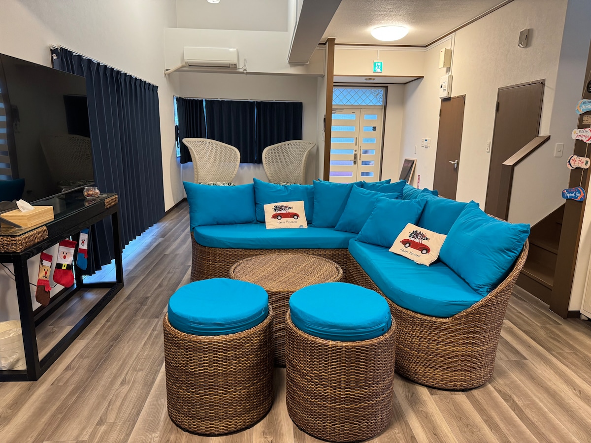 ようこそ!【Base in,Onnason,Okinawa】へ。 当施設は沖縄、恩納村エリアにある1日1組限定貸切のお宿です。 希望が丘入り口前ビーチまでは車で2分の好立地です。 BBQも可能です。(有料) 丸々一軒家を貸切でお貸出になります。 ------Room----- ■ 最大6名様まで宿泊可能 ■ 平米数 75.56㎡(3LDK) 一軒家貸切 ■ 寝室3部屋(全て2階) 寝室1(洋室):シングルベッド2台 寝室2(洋室):シングルベッド2台 寝室3(洋室):セミダブルベッド2台 ■ 浴室 シャワー、湯船 ■お手洗い 2箇所(ウォシュレット付き) ■ 光Wi-Fi完備 ■ 24時間営業コンビニ(ローソン)まで車で3分 -----Access---- 那覇空港から車で1時間 許田 IC→ 国道 58 号 →許田 ICから車で11分 那覇空港からバスで約2時間 →ハレクラニ沖縄前バス停前( 伊武部希望ヶ丘入口)から徒歩11分 ■駐車場 宿泊施設内のスペースに無料駐車(大きさにより2台まで)が可能。 【チェックイン】4:00pm【チェックアウト】10:00am