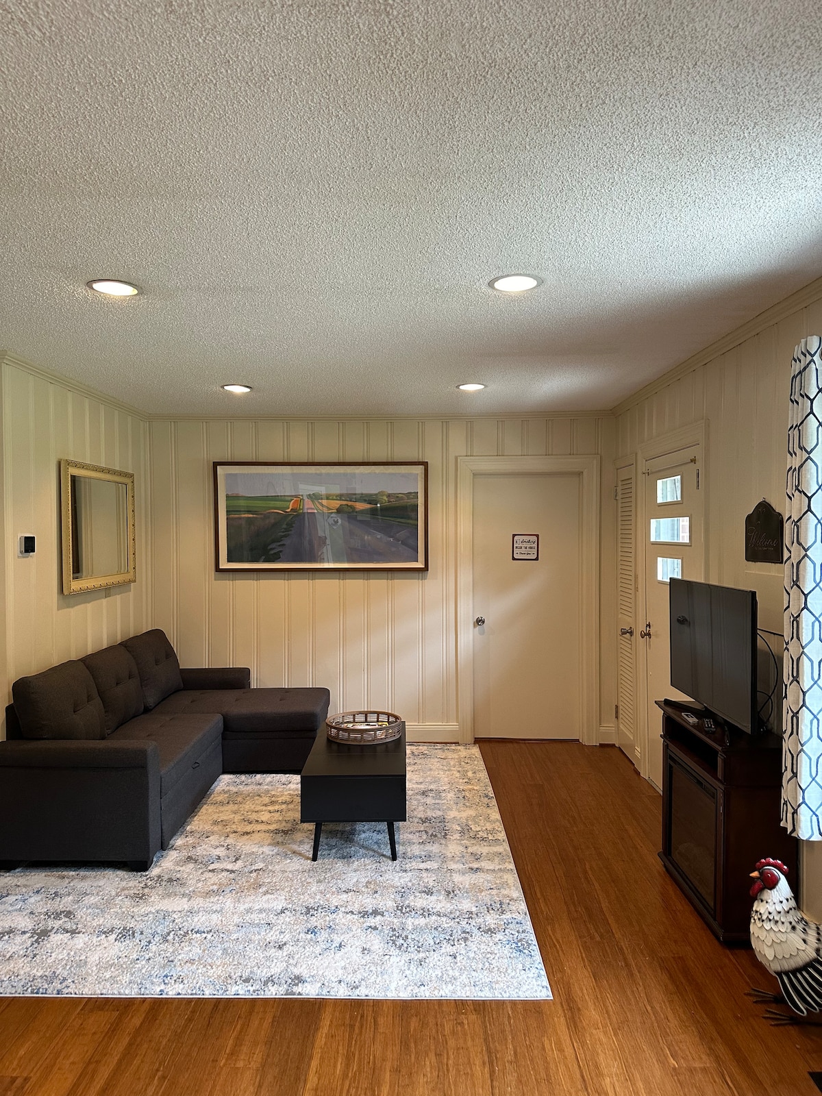 Private 1 bed/1 bath guest room conveniently located 10 minutes from Graham, Saxapahaw & Mebane & 30 minutes from Greensboro, Durham & Chapel Hill. Situated at Cranmore Meadows Tiny House Community, guests will also have access to a community kitchen & washer/dryer close by. Enjoy nature on our large deck with ample patio furniture and a jacuzzi. Our 30 acre property has trails through the meadows, a pond, and creek and is a perfect view into tiny living! All are welcome: LGBTQ+BIPOC
