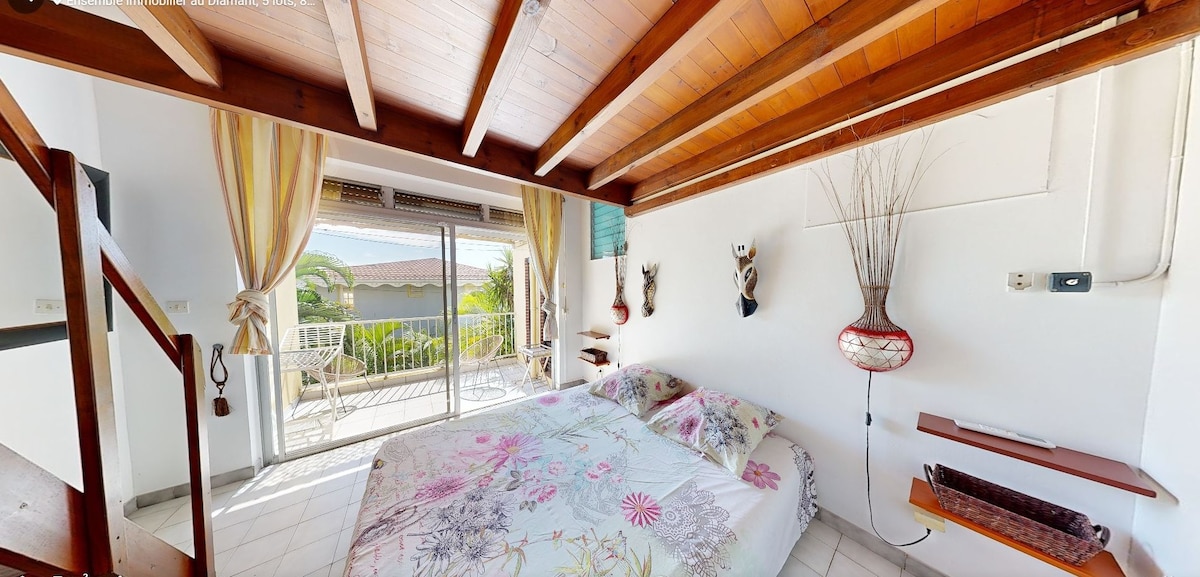 An exceptional place to enjoy Martinique! Magical views, direct access to the sea and the Black Diamond swimming pool ???? Our chic white studio boasts a beautiful terrace with outdoor kitchen, so you can live to the rhythm of the island, lulled by the lapping of the waves and the song of the birds. Magnificent beaches are all around, like Anse Noire, where you can swim with giant tortoises! And the many typical villages are an opportunity to discover Creole culture.