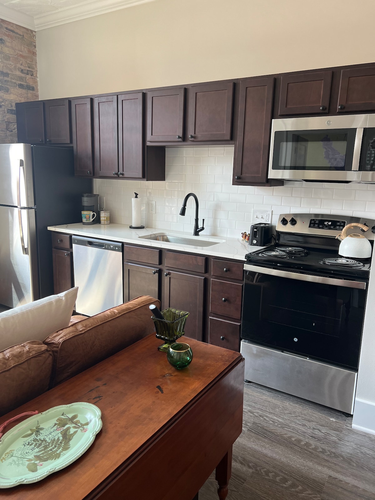 Nestled in a newly restored 1886 downtown building, among 14 apartments, the Nest is truly unique, full of historic charm and modern convenience including an elevator, all new quartz counters, tile shower, appliances, washer/dryer in unit, TV with cable, balcony. Close to Alma College, Michigan Masonic Home and MyMichigan Medical center, across from the historic Wright Opera House. Whether here for a weekend or need a temporary furnished apartment, the Nest is ready to make you feel at home!