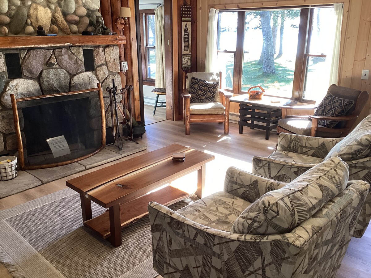 Enjoy the coziness of a bygone era while staying in this 1940s quaint, storybook log cabin. The Hawks Nest has been lovingly restored to its original glory while having all the modern-day amenities woven through its clean 380 sq. ft. space. Retreat to the spacious covered porch to relax and view the acre-and-half property leading down to 100ft of 6Mile Lake frontage. Star gaze while relaxing in the comfortable, Amish-built gilding chairs around the spacious, paver fire pit area .