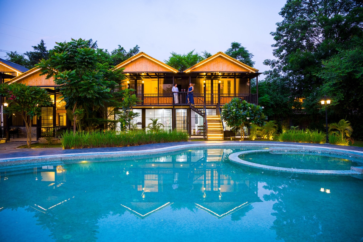 Close to Khori Jamalpur Jheel and Mini Ladakh, this 2-BHK forest villa offers a serene escape with rustic charm and modern comfort. Set amid lush lawns, gardens, and plantations, it features cosy rooms with views, a restaurant with indoor/outdoor seating, pool with gazebo, game zone, gym, sauna, and library. For families, couples, and celebrations, with spacious lawns and open greenery for events, plus a refreshing farm-to-table appeal. A perfect blend of nature, leisure, and comfort awaits.
