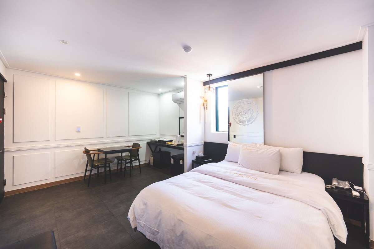 ★ 예약 시 환불 정책 및 공지사항을 반드시 확인해 주시기 바랍니다. - 미성년자는 보호자 동반 없이 숙박이 불가합니다. - 반려동물 입실 불가 - 건물 전 구역 금연 (건물 내, 숙소 내, 테라스 등) - 인덕션만 사용 가능하며, 버너는 사용 금지입니다. - 객실 내 육류, 튀김류, 생선류 조리 불가 - 이용시설, 비품의 분실 및 훼손은 비용 청구 할 수 있습니다. [주차안내] - 주차 무료 - 건물 내 지상, 지하 주차장 완비 - 전기차 충전 가능 [인원 추가] - 기준2인/최대4인 - 최대인원 초과 불가 - 기준인원 초과 시 1인당 1만원 추가요금 발생 [입실/퇴실] - 입실시간 : 15:00 - 퇴실시간 : 11:00 [취사] - 객실 내 인덕션만 사용 가능 (버너 금지) - 각종 식기류 구비 - 퇴실 시 설거지 부탁드립니다. - 객실 내 육류, 튀김류, 생선류 조리 불가