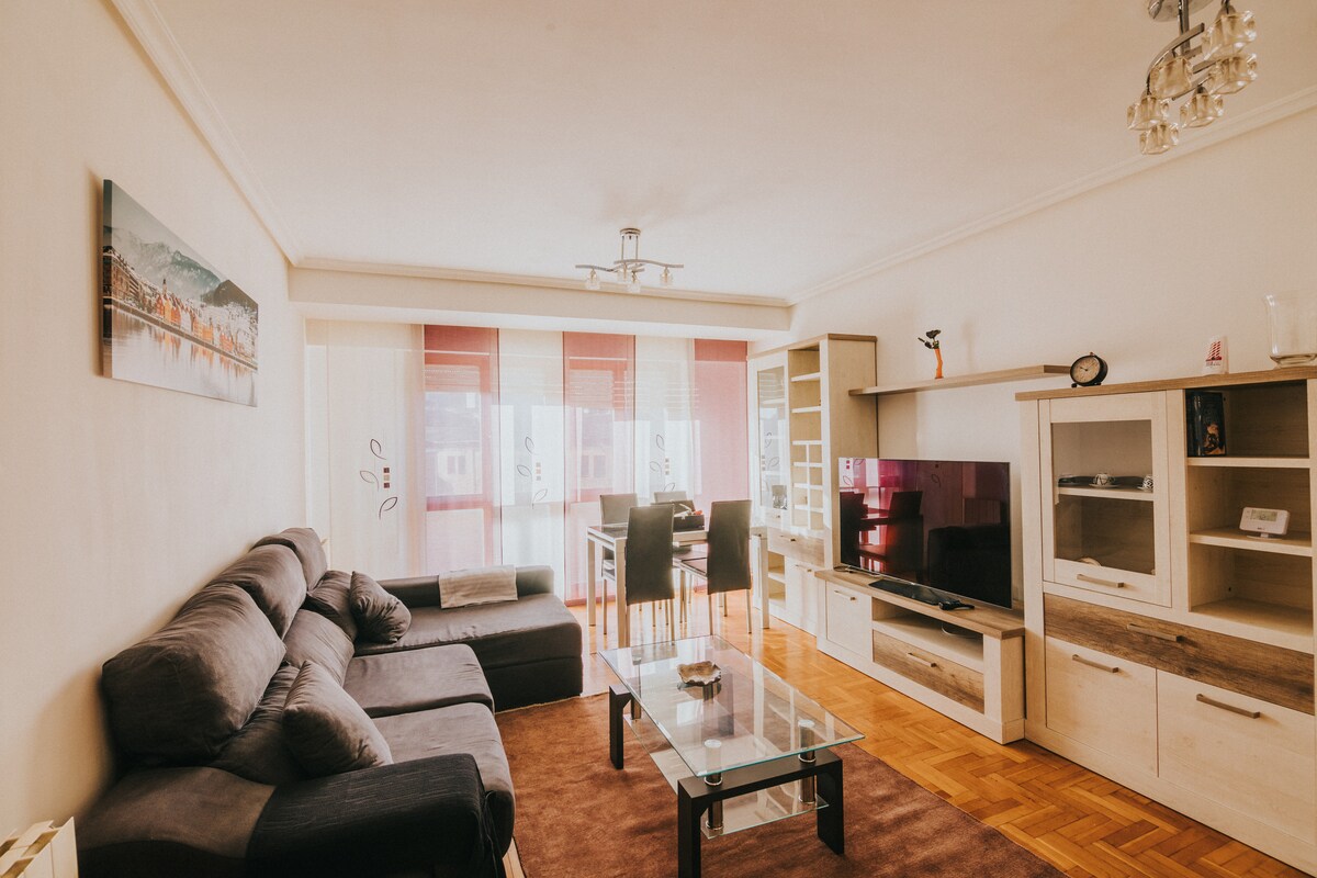 Bright and cozy apartment in the center of Logroño, on an elegant street near Gran Vía, the old town and Calle Laurel. Enjoy the center without pub noise or morning bells. OFFER: FREE PARKING and BREAKFAST (available, see photo). Renovated, with all comforts: new mattresses, 2 bathrooms, spacious living room, equipped kitchen, WiFi and TV in all rooms. Cool; in summer with ceiling fans and portable air conditioner.
