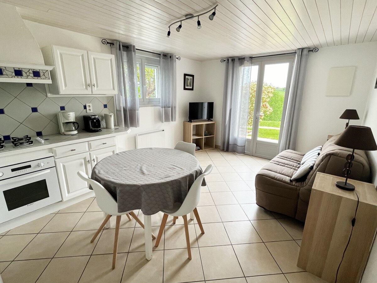 We welcome you, for a weekend, in an annex of our house, recently renovated. Small, but comfortable and optimized, you will find a bedroom with a 160 bed, a small shower room, as well as a kitchen to prepare meals and breakfast in complete independence. Enjoy a covered terrace, or share our garden with us if you prefer. A very central location, but quiet gardens in the second row. A "walking distance" lifestyle.