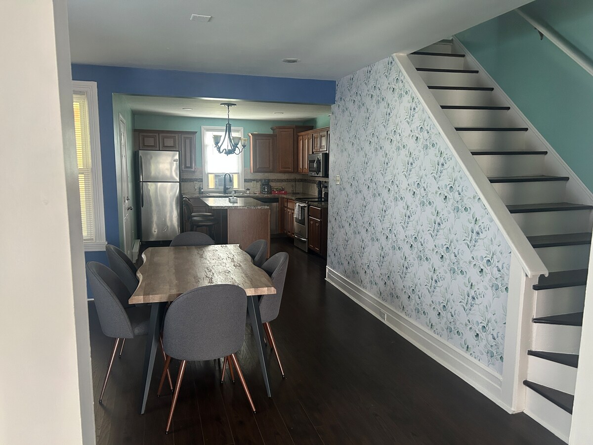 Newly renovated home features all of the modern amenities families enjoy. A large island, a dining table large living room, a bright sunroom with plenty of seating, as well as a sun porch with a bistro table & chairs, outdoor seating, & 3 spacious bedrooms upstairs each has a queen size bed. The home is a minute's walk from our popular home decor boutique, Gray Apple Market. A 10 minute drive to downtown York & other popular destinations such as the York Fairgrounds.