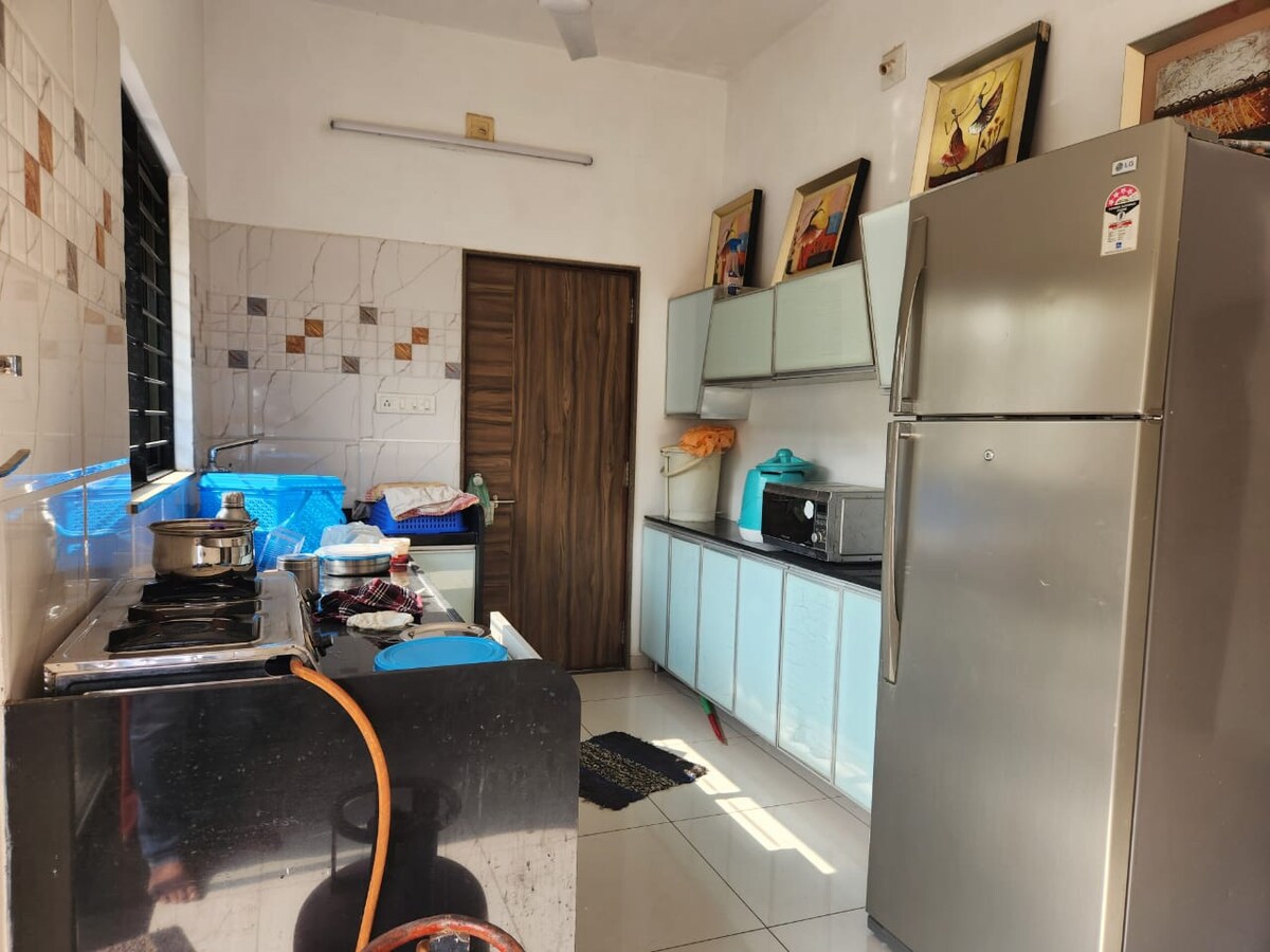 Located in a serene neighborhood, surrounded by farmlands, this apartment is ideal for business travelers, families, or guests visiting IIT Gandhinagar. All essentials, including restaurants and shops, are close by. Whether you’re here for work or leisure, experience a restful, convenient stay in a space that’s modern, cozy, and ideally located within walking distance of IIT Gandhinagar, 2.5km from NIPER. approx 4km from IIPH and Air Force and a 10-15min drive from market area of Gandhinagar.