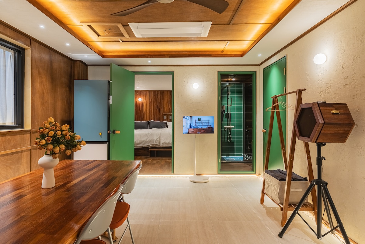 WECO STAY Chungmuro is nestled in a neighborhood with the trendy, retro vibes of Euljiro. The space blends stylish and cozy design, offering calm and character. It’s also a great area to explore on foot, with charming, timeworn alleyways. - Near top Seoul spots like Myeongdong, Euljiro, Namsan & Dongdaemun - 3-min walk from Chungmuro Station Exit 7 (Lines 3 & 4) - From the airport, take Bus 6001 to Chungmuro Station Exit 2 (6-min walk)