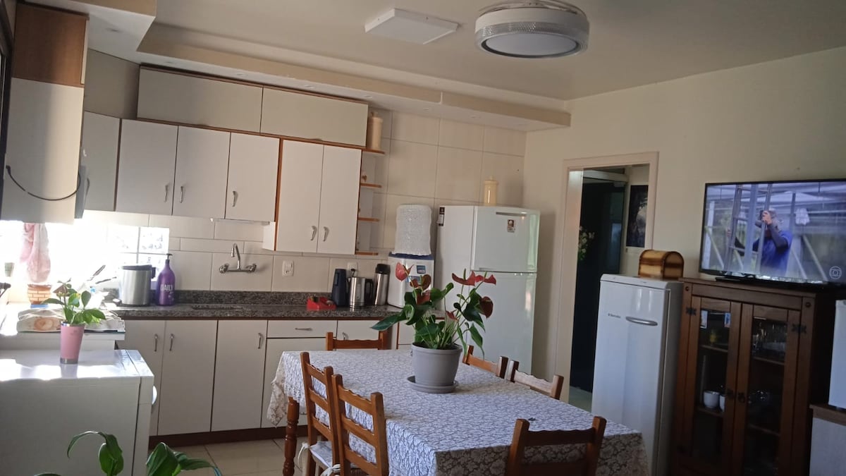 Our house is located in a residential condominium in Vale dos Vinhedos, an Italian region in Serra Gaucha. The house has a fireplace and a camp stove! In the backyard, there is a kiosk with a barbecue, a gas stove and a wood-burning oven for pizza. “Pet friendly” - The backyard is grassy, fully fenced, with 2 doghouses, with a large lawn allowing your Pet to be loose and have fun at will. All this provides a pleasant stay in the summer and a cozy one in the winter.
