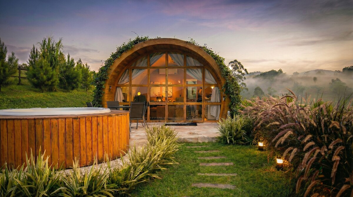 Welcome to the Galaxy dome, the first and only polycarbonate geodesic dome in Brazil, in the city of Imaruí - SC (1:30 from Florianópolis). Its interior features a full kitchen (with breakfast basket included in the daily rate), bathroom with thermal towel rack, air conditioning (hot and cold), Alexa, queen size canopy bed and projection screen! Outside, a deck with heated hot tub, fire pit and gourmet area with barbecue. Note: We accept small and medium-sized pets.