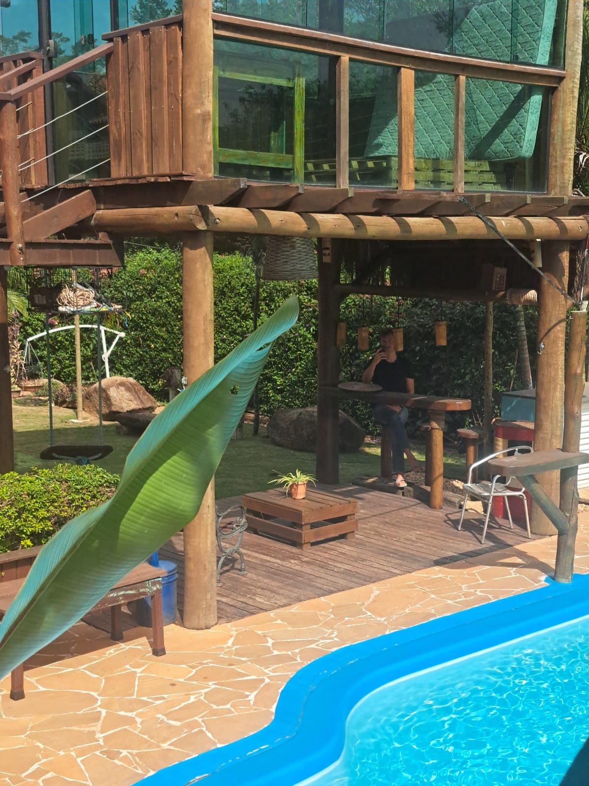 Cozy house with views of native forest and complete and integrated leisure area. Bring your family and friends to spend unique moments of leisure and tranquility. Fully equipped house, ready to receive them. Swimming pool with a small beach that is well suited for children (always accompanied by adults), the elderly, and those who love to sunbathe. Mini playground with swing and slide (children must be accompanied). Beautiful pergola for reading or contemplating! Airy and comfortable bedrooms.